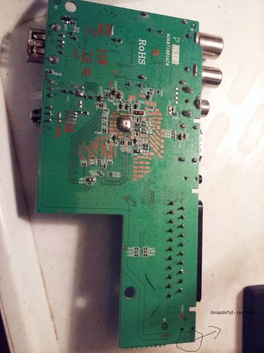 . Zaczynam się uczyć od podstaw elektroniki analogowej jak i cyfrowej. Po trochu tu i tam... Mam dekoder cyfrowy, który po podłaczeniu zasilania nie działa. Zasilanie do tego dekodera to 5V. Osoba nie znająca się na tym, zasilała ten dekoder zasilaczem 9V, z tego powodu ze zgubiła zasilacz oryginalny do tego dekodera. Po rozebraniu dekodera i wyjęciu płytki głównej , wina jest w "przepaleniu" gniazda zasilającego na płytce głównej. Są 4 luty przy gniezdzie zasilającym . Przy trzech lutach jak sprawdzam miernikiem ciągłość trwania sygnału jest ok, ale przy czwartym brak ciągłości sygnału( brak dzwięku). Nie wiem czy dobrze rozumuję, w tym wypadku wymiana gniazda zasilającego na nowy? I tu mam problem z odlutowaniem tego gniazda.. Podaję zdjęcia z przodu i z tyłu płytki głównej. Tam po lutach próbuję lutownicą roztopić lut i wyjąc gniazdo. Ale za cholerę nie chce wyjść.. Czy jest możliwość wylutowania tego gniazda, bez uszkodzenie płytki ? Po podłaczeniu zasilania wczesniej dioda nie świeci. Kondensatory są ok. więc tu nie ma co wymieniać. Wina jest w podaniu zbyt dużego napięcia zasilającego wczesniej, co spowodowało spalenie się jakieś częsci na płytce głównej. Zasilacz przerobiłem na 5V. Więc teraz zasilacz jest ok