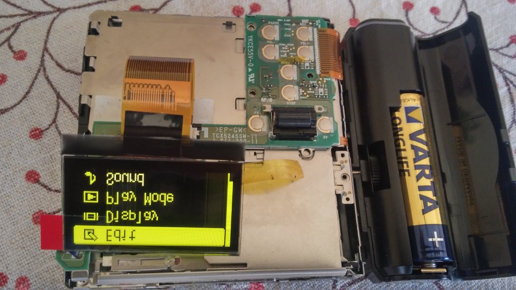 Wcześniej miałem podłączony wyświetlacz na sterowniku SSD1327 128x128 kupiony w pośpiechu , wyświetlał nagłówek prawie dobrze ( ikonki ) resztę różnie brak zdjęć , różni się komendami i jest z rodziny "grey skale" jak i ssd1325 i inne . W ssd1325 brak nagłówka ( ikonki ) bo ma 128x64 obcięto 32 wiersze w porównaniu do ssd1328 128x96 . Elektronika MZ-RH10 jaka bierze udział do wyświetlania treści na wyświetlaczu to - eeprom AK6512CM-E2 - system kontroler DSP CXD2681-225GG z wyjściem SPI na moduł wyświetlacza ( brak schematu modułu wyświetlacza - opieram się na MZ-RH1 ) - display driver S1C88317D04H000 z wyjściem Parallel 8080 na display oled ssd1328 . tak jak pisałem wcześniej jak wyciągnąć oprogramowanie aby zmienić wartości w sekcji display oled " oto jest pytanie -