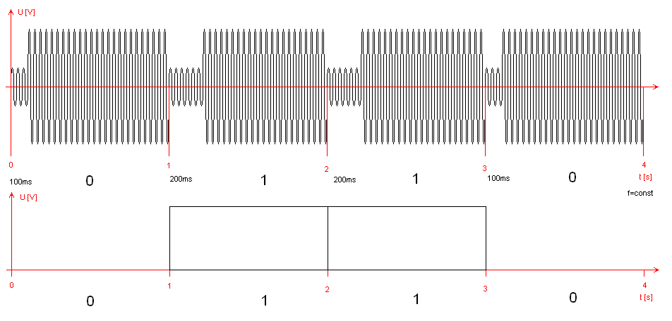 A właśnie ze jest. Z opisu wynika, że "bity" sa przesyłane co 1 sekundę. Jeżeli znasz czestotliwość sinusoidy na przykład 1kHz, to odfiltrowujesz przebieg aktywnym filtrem dolnoprzepustowym o fg=np 200...500Hz i juz nie masz sinusa. Jeżeli po filtrowaniu masz przebieg trochę podobny do TTL L=0...07V, H>2,5V to możesz go podłączyc do uC, jeżeli nie to trzeba go wzmocnic/stłumic i ew odseparować transoptoremWitam,