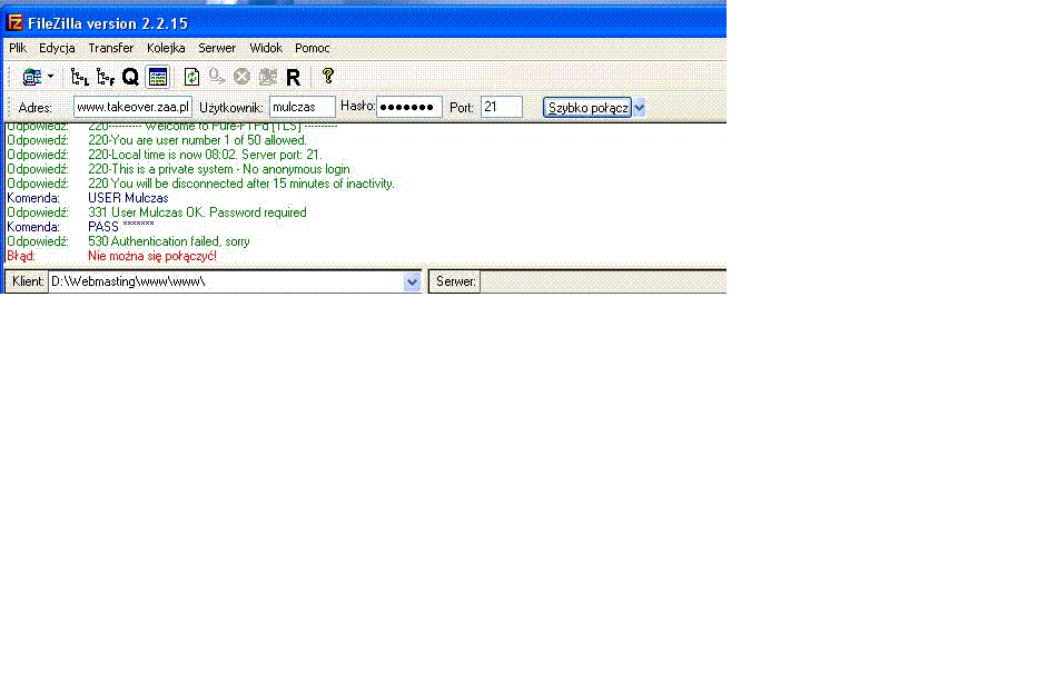 z filezilla niewiem czemu nie laczy?