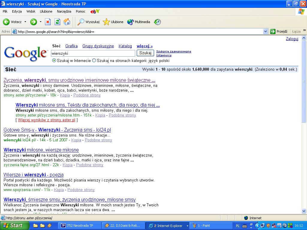 Problem jeste tego typu. w wyszukiwarce Google wpisuję np hasło wierszyki. Wszystko ok. Wyskakuje mi rezultat wyszukiwania. Klikam sobie na link który mnie interesuje a tu...lipa. Otwiera mi się coś dziwnego. Raz otworzyły mi się strony erotyczne