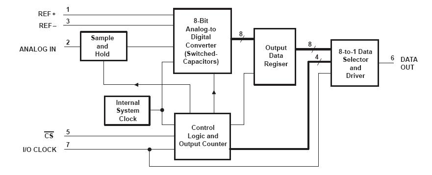 Na zdjeciu przedstawiony jest schemat działania przetwornika AC TLC549.