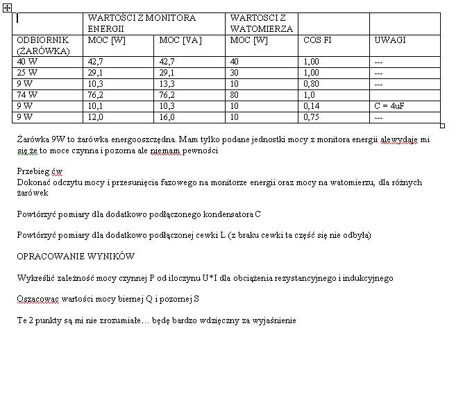 W załączniku tablica pomiarowa oraz przebieg ćw i 2 ostatnie punkty których mi brakuje do pełni szczęścia :). Jeśli ktoś by się tym problemem zainteresował to byłbym bardzi wdzięczny :)