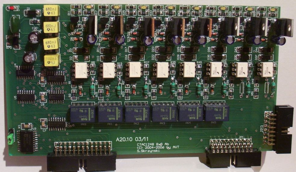 Dobre pytanie. Optotriaki sterują dzwonieniem, przekaźniki zamieniają polaryzację żył po zgłoszeniu się abonenta wywoływanego. Jak łatwo sie domyśleć tylko 6 abonentów na karcie ma taka możliwość. Dlaczego tylko 6:...bo zdjęcia płytek wskazują na jakieś nietypowe rozwiązania: czyżby optotriaki do załączania napięcia dzwonienia(?), zatem po co przekaźniki (w dodatku 6 na 8 abonentów(!?).