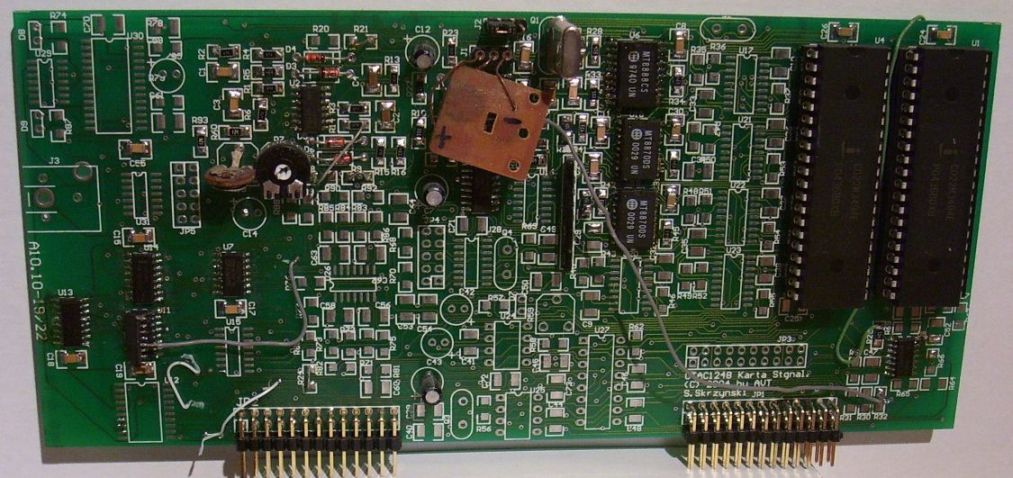 # Karta sygnałowa - 6 odbiorników DTMF jeden nadajnik, Generatory 400Hz, 16kHz (teletaksa), dwa moduły zapowiedzi słownej (od 16 do 60 sek), nadajnik FSK, wybieranie abonenta wewnętrznego (DISA).