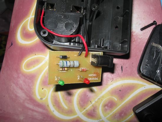 Czerwona dioda świeci po podłączeniu tego układu do ładowarki. Zielona świeci wtedy, kiedy podłączony akumulator. Nie wiem, czy dioda gaśnie po naładowaniu akumulatora, zwykle uzywam go po 5-6 godzinach ładowania- z konieczności.