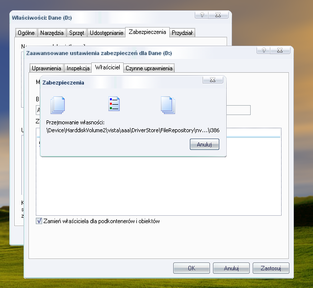 I jak przejmiesz je na wlasnosc to jeszcze na wszelki wypadek w oknie z grupami i ich uprawnieniami dodaj grupe administratorzy i nadaj im wszystkie prawa.