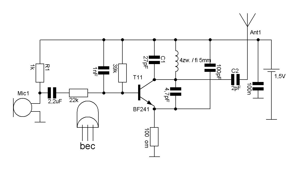 heyah:) mam dla Ciebie dobry sprawdzony schemat nadajniczka ale z diodą pojemnościowa do modulacji .W tym który Ty przedstawiłeś modulacja odbywa sie na zasadzie zmiany pojemności złącza tranzystora Q2 pod wpływem sygnału z mikrofonu .Bawiełem sie również takim rodzajem nadajniczka ale był on na 1,5 V .Jak zrobiłem anlogiczny na 9V to działał równiez ale własnie miał małą czułość.I niestety zmiana tranzystora też miała duży wpływ na modulacje(czułość).Chyba tak jak nie każda dioda jest pojemnościowa tak i nie każdy tranzystor zmienia pojemnośc złacza w takim samym stopniu jak inny. Jak chcesz to narysuje Ci schemat tego na 1,5V (z tranzystorem BF 241 o ile dobrze pamietam) i prześle.Aha i jeszcze spróbuj zmienić wtym swoim C3 na 1 nFmoże coś to da :)