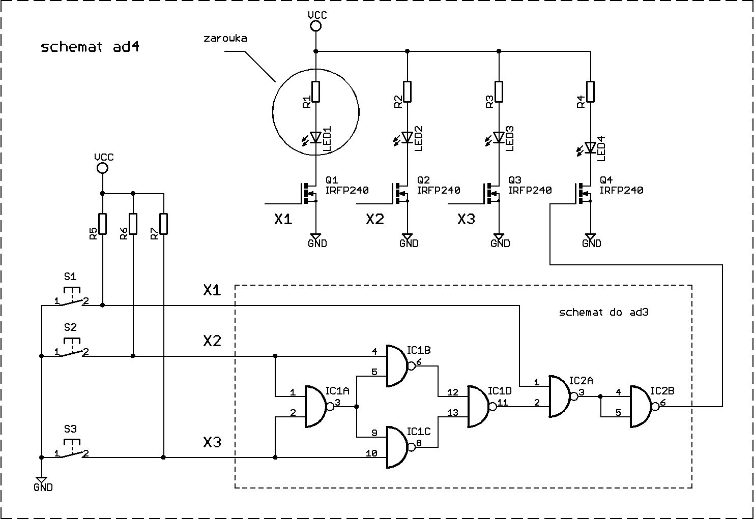 3. Zrealizuj zminimalizowaną funkcję na elemencie dwuwejściowego iloczynu TTL 7400.
