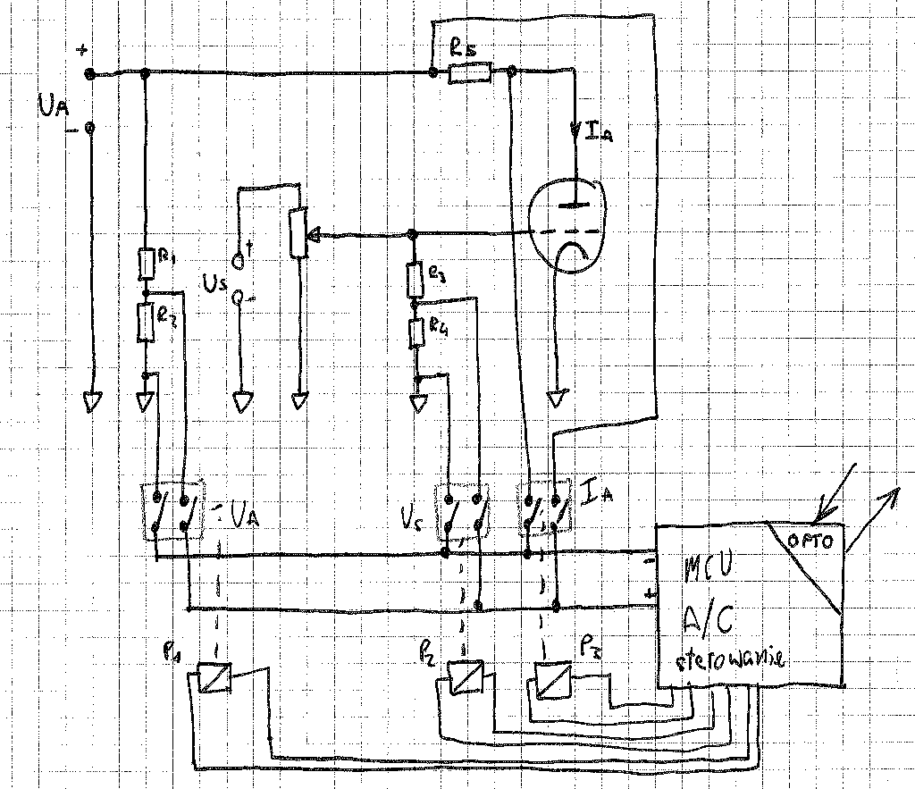 miernik zamyka sobie przekaźnik P1 - wtenczas mierzy napięcie anodowe Ua.