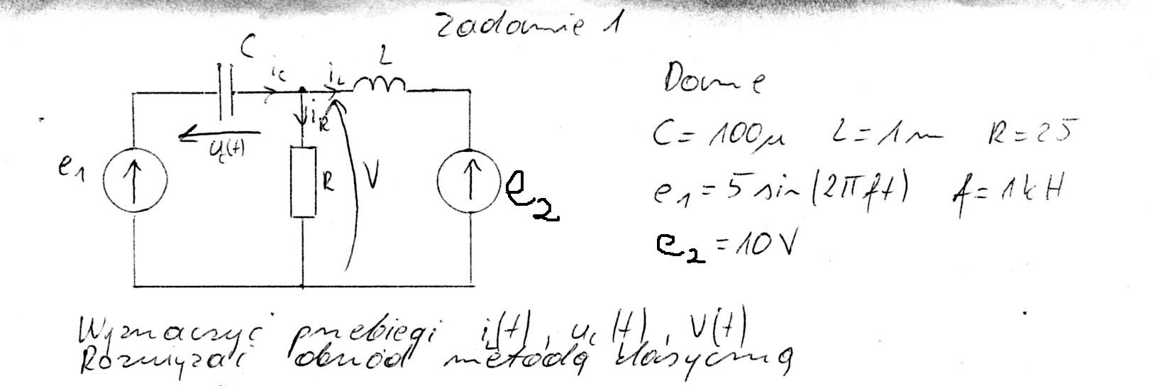 Może ktoś ma czas i ochote żeby rozwiązać takie ciekawe zadanko ze stanów nieustalonych gdzie cały kłopot polega na tym że jest zarówno źródło napiecia stałego jak i przemiennego .Jak coś to się nie krępujcie
