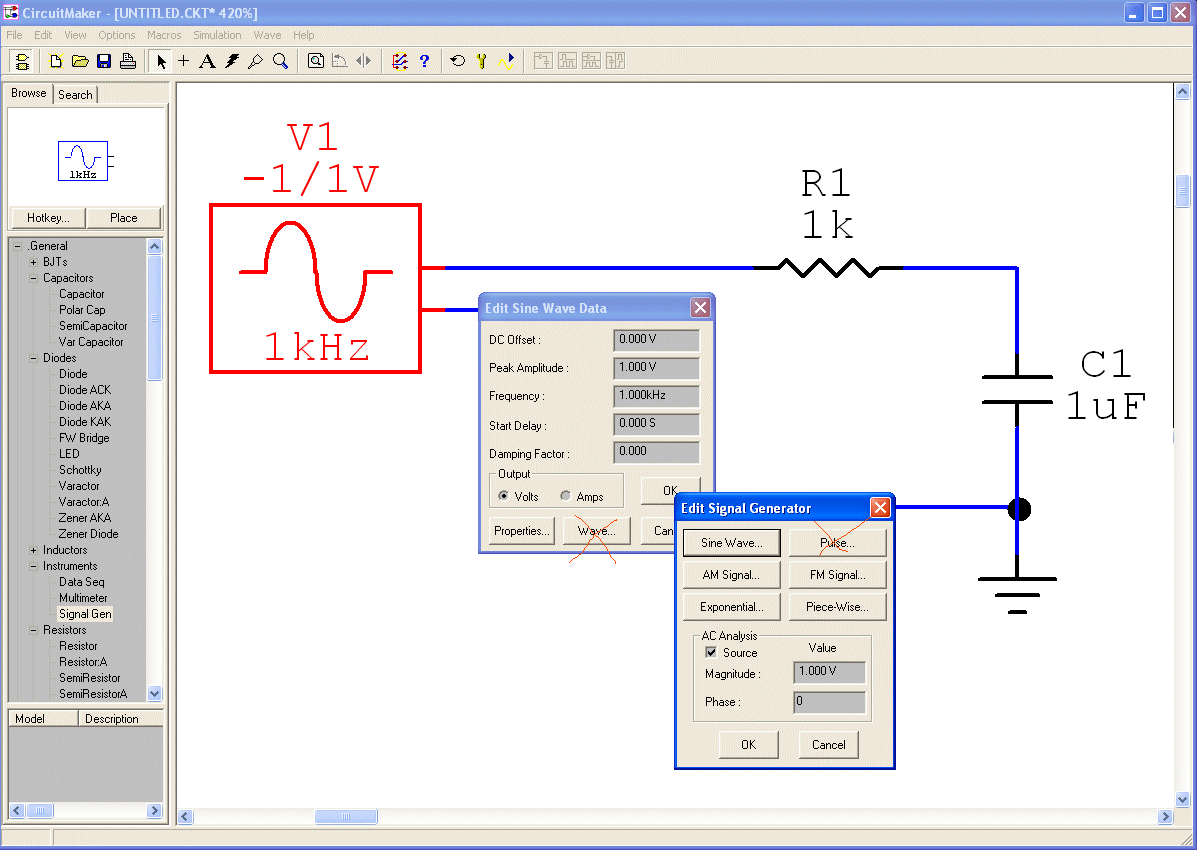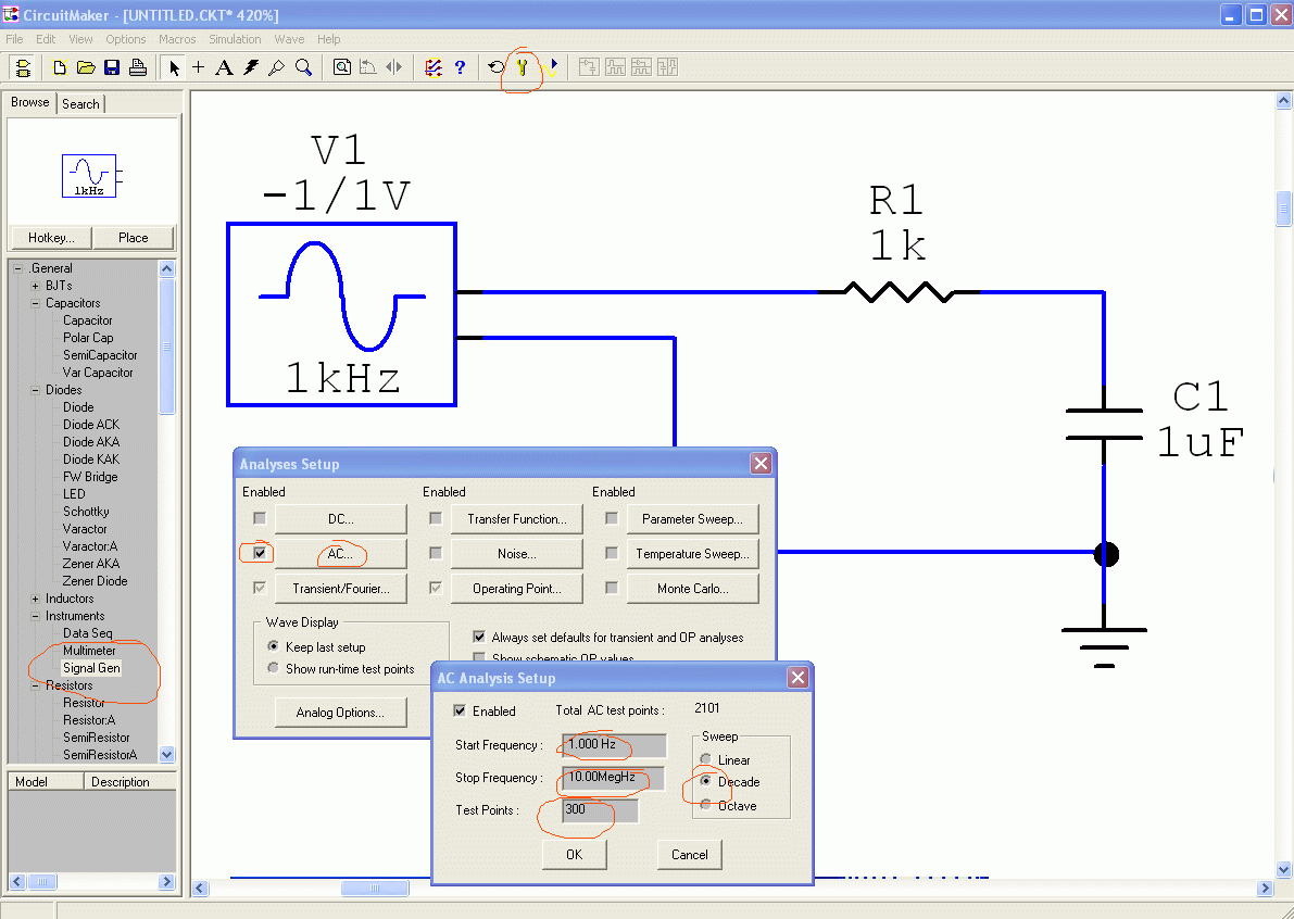 Sprawdź punkty Zarejestruj sięAnaliza częstotliwościowa w Circuit Maker
