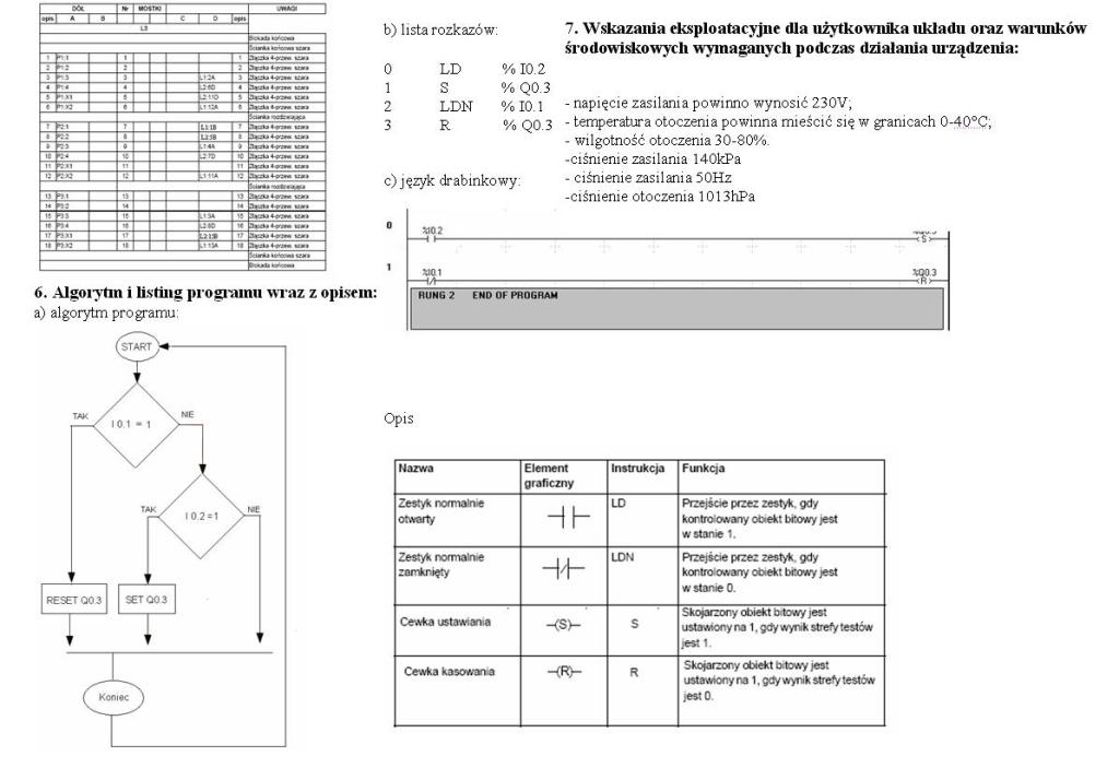 Moim zdaniem pierwszy algorytm był bliższy poprawnej realizacji założeń programu, chociażby dlatego że zakładał pracę w pętli. Drugi algorytm, dla I0.2 = 1 zawiesi program i nie ma żadnego sterowania.