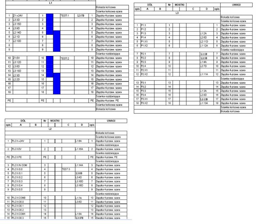 Mam pytanie odnośnie tabelki Wpisuje w tabelce połączenie L1.1B z L3 &B czyli L1 1A L3 7A