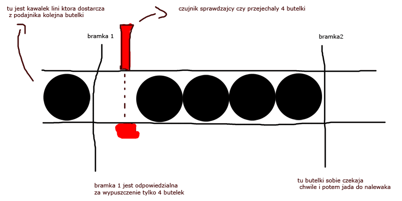 ogolnie to urzadzonko ma za zadanie sprawdzac czy bramka 1 ( pneumatyczny silownik)napewno wypusci 4 butelki ;] czasami tego nierobi ;]