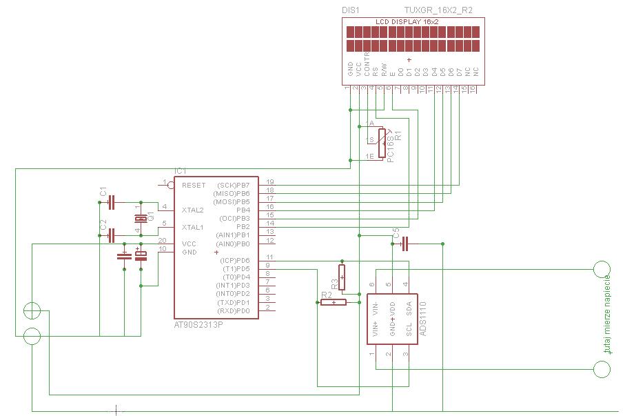 Zbudowałem układ wg. własnego schematu (załącznik pod postem). Bardzo prosty, zadaniem mikrokontrolera jest odczytywać oraz wyświetlać wyniki pomiarów na wyświetlaczu LCD. Napisałem taki program: