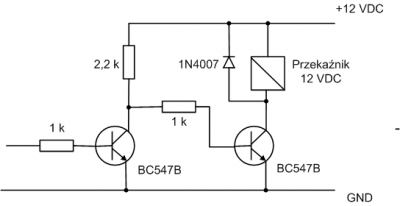 Dlatego przed użytym przez Ciebie tranzystorem musisz dodać jeszcze jeden - będzie on pełnił funkcję inwertera.