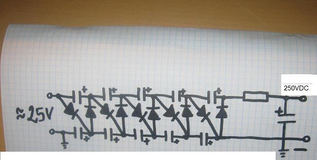 - lub też zastosować kombinację tych metod - jeszcze inna wartość napięcia, i odpowiednio do niej dostosowana liczba diod i kondensatorów w powielaczu