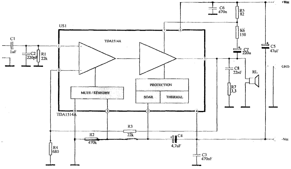 Prosze o pomoc! Czy może mi ktoś podać wzór na wzmocnienie w kości TDA1514A? Odpowiedź prosze oprzeć o schemat w załączniku.