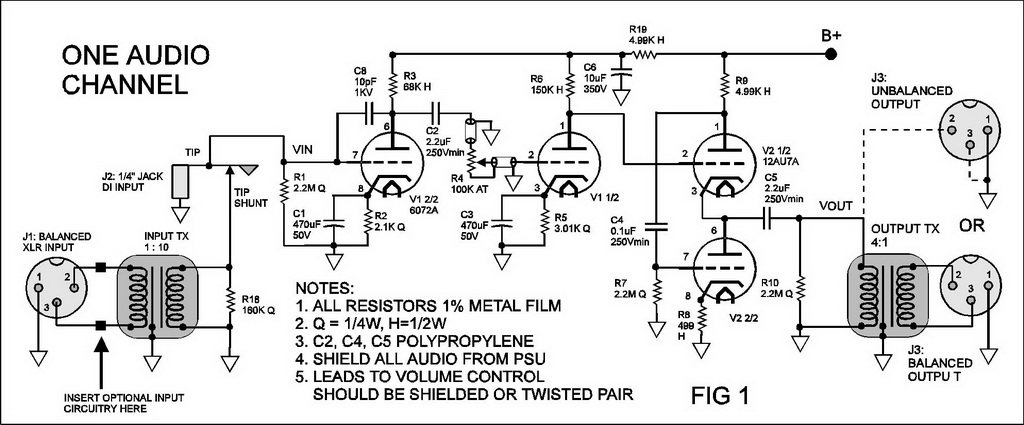 Wszystko super, ale powiedz mi gdzie masz zamiar kupić te trafa, które masz na wejściu i wyjściu przedwzmacniacza? No i doszły mnie opinie, że ECC83 czyli 12AX7 to nie jest zbyt dobry wybór jeśli chodzi o przedwzmacniacze typowo mikrofonowe. EF86 mniej szumią i mniej mikrofonują - a to przecież bardzo ważne.