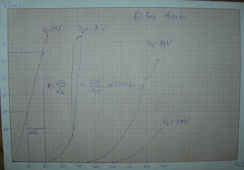 W załączeniu na szybko zrobiona rodzina charakterystyk anodowych lampy EL84 w układzie triodowym.