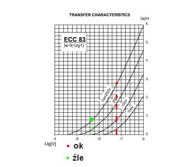 1.Dobierając punkt pracy Ecc83 patrze na charakterystke siatkową Ia=f(-Ug1)