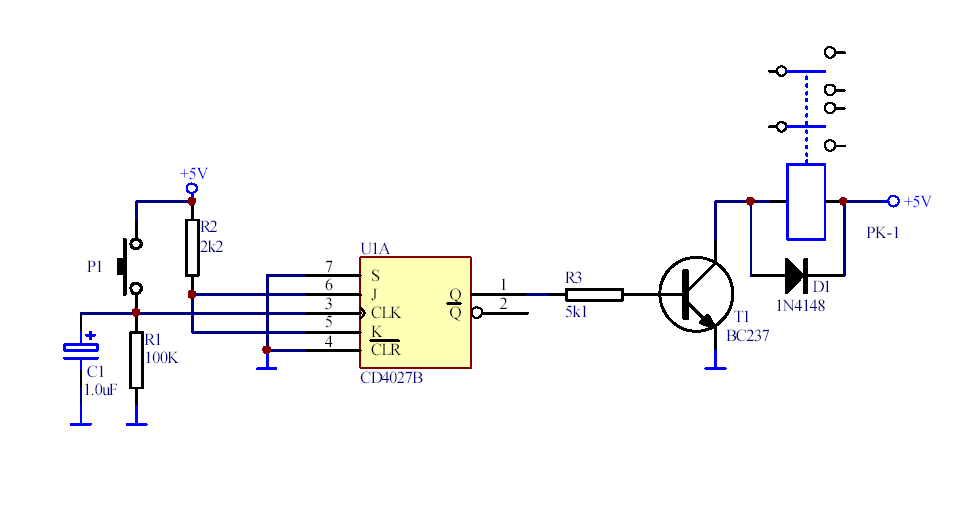 W załącznik prosty schemat układ wykorzystujący przerzutnik JK.