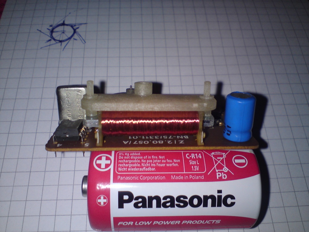 Widze tylko kondensator, cewkę, krzemową kostkę, coś odpowiedzialnego za częstotliwość (ma na wyciśnięty napis 8338,88 KHz), potencjometr, i takie małe coś brązowe na dwóch nóżkach,które widać na jednym foto tuż pod obudową zwojnicy... ale nie wiem jak to wszystko razem działa. Zegar ma już wartość sentymentalną i jest bardzo ładny więc zależy mi by go wyregulować...