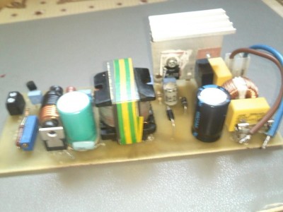 Zbudowałem zasilacz inpulsowy na podstawie artykułu Praktyczny Elektronik nr 7,8/1997.Sprawdziłem kilkakrotnie jakość lutów i wszystko wygląda dobrze.Po podłączeniu do sieci 230 V jest możliwość regulacji napięcia wyjściowego 12 V.
