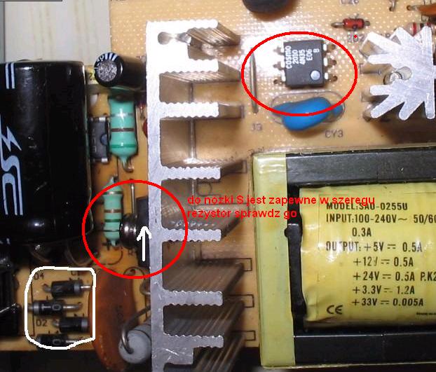 Czy mówiąc o rezystorze i diodach aby posprawdzać mówiłeś o tych, które zaznaczyłem na foto ?