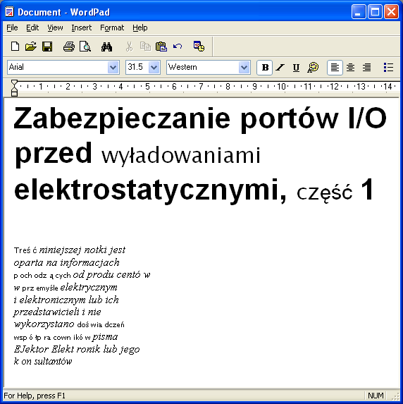 Tu przyklad skopiowanego tekstu wstawionego do WordPada.