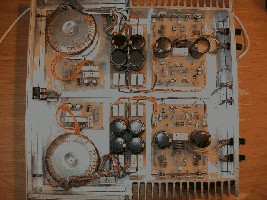 To wygląda tak: układ wzmacniacza został zaprojektowany pare lat temu. Tranzystory końcowe HEXFET produkowane dzisiaj mają lepsze parametry od tych starszych- mają oznaczenie N na końcu. Lepsze parametry to głównie szersze pasmo i mniejsze pojemności bramka-kanał. Powoduje to poszerzenie pasma wzmacniacza i niestety wzbudzanie. Wzbudzanie objawia sie wzrostem prądu zerowego po włączeniu zasilania, aż do uszkodzenia HeHFEt'ów. Ogólnie jest tak ,że włącza się wzmacniacz, reguluje prąd zerowy tak jak w opisie i wszystko jest OK nawet przez godzinę . Jednak po wyłączeniu i ponownym włączeniu puuuffff i nie ma obu hexfetów i kilku rezystorów - słady widać na zdjęciu. Z problemem tym walczą ludzie na całym świecie - co widać na przykład na audiodiy.com. Antidotum na to jest zwiększenie rezystorów bramkowych do wartości 47R....150R, wlutowanie zamiast bezpieczników rezystorów 0,1R (BEZINDUKCYJNYCH - w żadnycm razie nie moga byc drutowe). Bezpieczniki zabezpieczają układ całego wzmacniacza, a nie tylko obwód kanału hexfeta jak w oryginale.