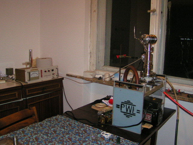 Po całej nocy pracy zestawu próżniomierz wskazuje teraz 1,5*10^-6 Tr. Co prawda dla pompy PDO100 jest przewidzane ciśnienie końcowe 5*10^-7 Tr, ale na innym oleju.