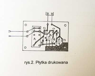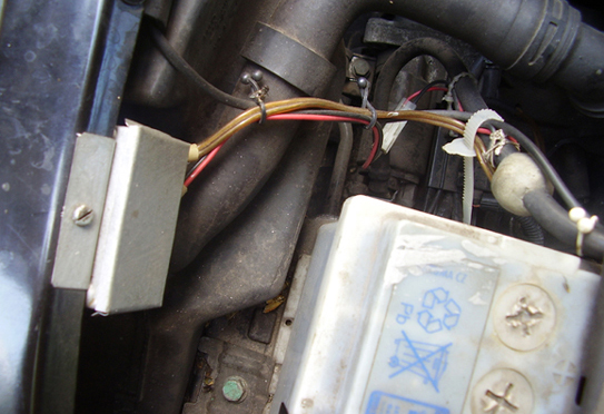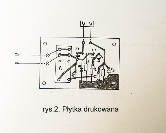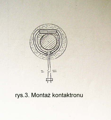 Kontaktron należy umocować na przewodzie zasilającym rozrusznik poprzecznie, zgodnie z liniami sił pola magnetycznego, w sposób pokazany na rys.3, za pomącą taśmy przylepnej lub „Poxiliny”, najlepiej niedaleko od akumulatora, gdyż tam są najmniejsze drgania pochodzące od pracy silnika samochodu. W przypadku przyklejania Poxiliną, na kontaktron i wyprowadzenia należy nałożyć luźną rurkę izolacyjną. Poxilina po stwardnieniu nie jest elastyczna i rurka zabezpieczy delikatny korpus kontaktronu przed pęknięciem od mrozu i wysokiej temperatury.
