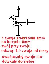i odczep po 1,5 zwoja od masy oraz kondensator 33p od odczepu do masy.