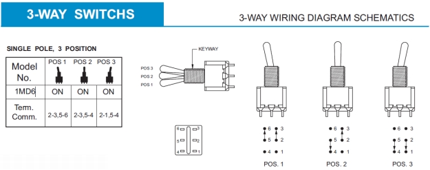 Poszukuję miniaturowego przełącznika trzypozycyjnego o stykach jak poniżej: