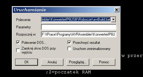 Powiadasz ze AVRSide nadpisuje. W ktoryms momencie mialem z tym problem i reczne wykasowanie plikow dopiero pomoglo. Dlatego dla czystej "higieny" zrobilem sobie bat-a. Wywolywanie takich pomocnych narzedzi czesto sie przydaje. Mozna sobie napisac sporo takich autoatow np. do robienia kopii roboczych, ucinania ogonkow polskim literkom (akurat dwa przyklady z ktorych obficie korzystam ;) ) Milo by bylo wywolywac takie "automaciki" z poziomu IDE bez potrzeby przelaczania. Swietnym przykladem realizacji tego jest polecenie "uruchom" w TextPadzie. AVRSide zbliza sie bardzo do mojego wyobrazenia o idealnym IDE. Brakuje wlasnie tylko tego malego szczegoliku. Dorzucam zrzut z ekranu jak to jest w TP. Za poswiecenie kilku chwil i ewentualna implementacje w nowej wersji serdecznie z gory dziekuje.