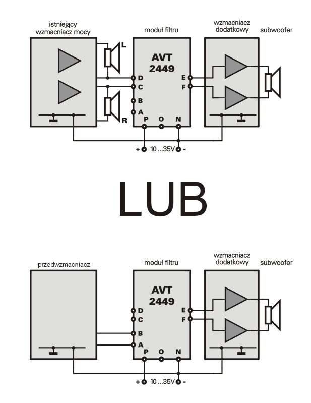 Przypomniało mi się jeszcze coś, mam wzmaciacz o impedancji od 6 do 16 ohm, a subwoofer o impedancji 4 ohm czy musze stosować jakieś rezystory czy obejdzie się bez tego? Jak tak to gdzie je najlepiej umieścić skoro będę używał AVT 2449?