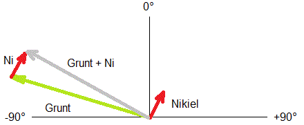 RX - (od gruntu(zielony) + od obiektu z niklu(czerwony) = wypadkowy(szary)