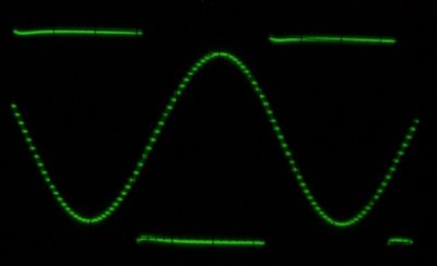 Po odfiltrowaniu częstotliwości zegarowej (R7/C17) wygląda jeszcze lepiej. :) Wybrałem tą kość, bo zapewnia niewielkie i - co ważniejsze - stałe przesunięcie fazowe a częstotliwość przebiegu taktującego jest 64 razy wyższa od częstotliwości granicznej filtru. Dzięki temu można było oba przebiegi "wyciągnąć" z procesora bez cudowania z dzieleniem przez 50 lub 100 jak miałoby to miejsce w przypadku innych układów. I tak wymagało to sporego "przemeblowania" wyprowadzeń, bo teraz procesor poza generowaniem przebiegu prostokątnego TX_SQR (pin 4) musi wystawić sygnał zegarowy TX_CLK (pin 8 ) o 64-krotnie większej częstotliwości: