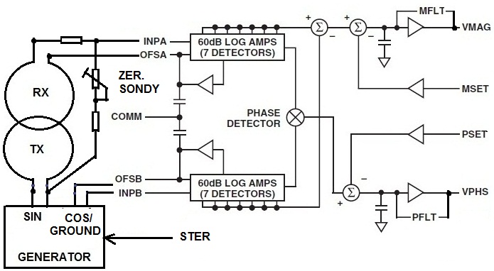 :arrow: sygnał NUL o przeciwnej fazie do SIN i regulowanej amplitudzie, służący do skompensowania sygnału wynikającego z niedokładnego zrównoważenia sondy.