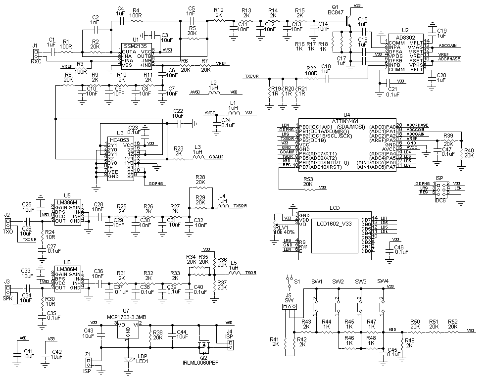 ( 3.3V - KBD_ADC ) / ΣR + ( VBAT - KBD_ADC ) / 60kΩ = KBD_ADC / 2kΩ