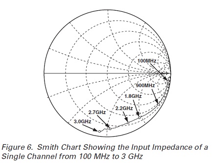 Męczyła mnie ta niezgodność impedancji wejściowej AD8302 podawanej w katalogu (3kΩ||2pF), więc zapytałem magików z AD (Thank you, Ching!