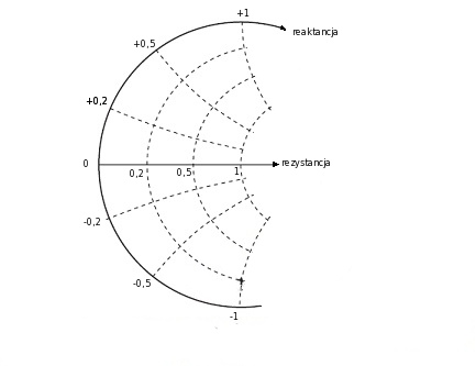 Aha, zapomniałem: jednostką jest impedancja stosowanej linii, czyli najczęściej 50 Ω lub 75 Ω . A więc w środku mamy impedancję dopasowaną do linii.
