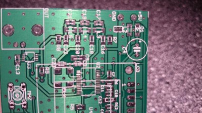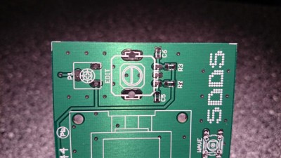 Zdjęcia marne, robione na szybko telefonem, ale widać istotę problemu. Na większości pól 0805, przynajmniej częściowo, opis jest na polach. Na padach pod Amega cała linia, kilka padów AD9850 kompletnie pokryte farbą. O switchach nie wspominam - całe pola to farba opisu. W tym wypadku myślę, że to błąd projektowy. Dla elementów przewlekanych opis jest normalnie po drugiej stronie. Po prostym "odbiciu" na stronę bottom wszystko ląduje na polach lutowniczych. Reszta to zwykła niechlujność przy pasowaniu sita, albo przeskalowanie przy naświetlaniu, bo opisy ewidentnie są za "chude".