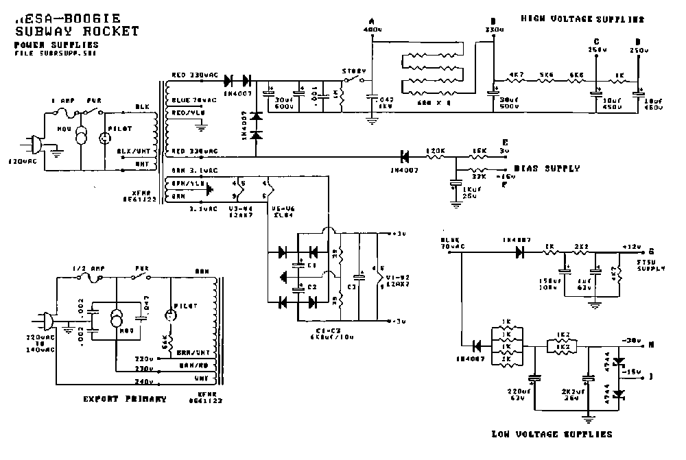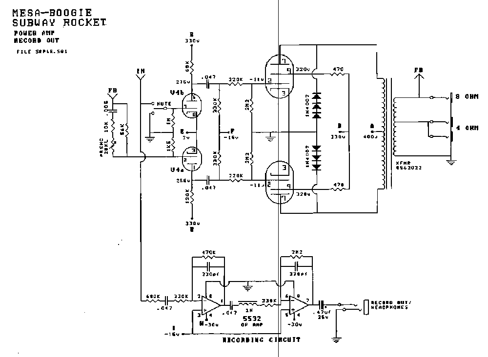 Na początku zaprojektowany był według schematu subway-rocket. Ma nitypowo podłączony bias i transformator sieciowy bardzo się grzał. Zamieniłem więc końcówkę na tą z laneya.