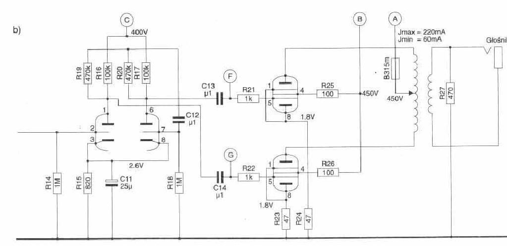 a koncowka mocy..to bedzie projekt z pisma elektronicznego...I mam pytanie...zeby uzyskac te zasilanie 460vDC 450VDC..bede musial skorzystac z dwoch tych uzwojen anodowych...co za soba niesie..podczas wylaczenia zaslania anodowego w zasilaczu..napiecie wskoczy mi wysoko..zaa wysoko dla moich kondesatorow...mam 100uF 250V..po dwa szeregowo lacze...Moge zastosowac nizsze napiecie?..bez wiekszych strat na mocy koncowki?