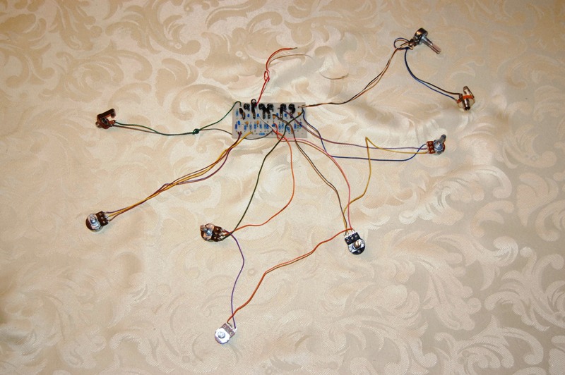 Na koniec chciałbym pokazać, jaki podstawowy błąd robi prawie większość składających jakikolwiek przester! Zazwyczaj tłumaczą się, że jest to tylko prowizorka do uruchomienia! Niestety, ten czuły układ nie wie, że jest prowizorką i te długie gołe druty to nic innego jak tylko dobra antena zbierająca wszystko, co wisi w powietrzu! To wszystko musi być ekranowane, obudowy potencjometrów połączone drutem ze sobą a koniec dolutowany do masy, w przeciwnym razie nawet przysuniecie reki, spowoduje przyrost szumu!