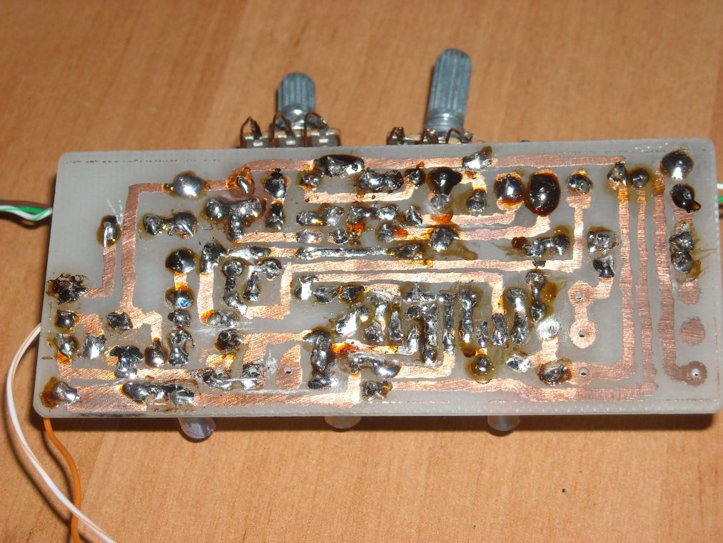 Na schemacie tuż za preampem jest przełącznik, jednak nie widzę go u ciebie. (dałeś tam jakiś mostek ?)