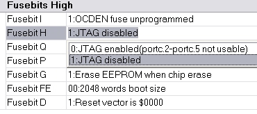Wpisałem wyżej wymienione JTAG na disabled -wszystko nadal ok z uP -nie